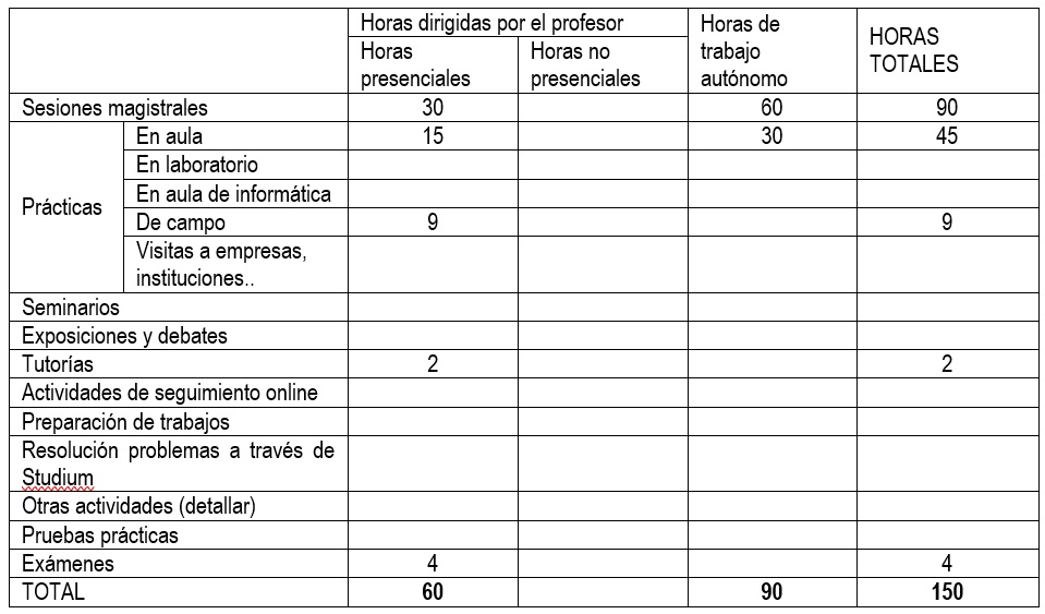 La metodología a seguir contempla aspectos teóricos, prácticos y tutoriales. La parte teórica se compondrá de clases magistrales, que presentarán los contenidos fundamentales de la materia y orientarán al estudiante en sus lecturas y trabajo personal. Las clases prácticas consistirán, fundamentalmente, en el uso de imágenes que previamente el estudiante habrá analizado de manera independiente y de textos que el estudiante también habrá analizado antes de forma autónoma. También se desarrollarán ciertos seminarios en los que se procederá, en grupos, a comentar críticamente los libros de lectura obligatoria sugeridos por el profesor y las prácticas fuera del aula previstas. La asistencia a las clases, tanto teóricas como prácticas, será obligatoria. De modo individual, y como parte de la evaluación final, se presentará un comentario crítico elaborado por el estudiante a partir de uno de los libros sugeridos en la bibliografía.