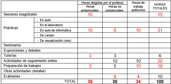 La evaluación teórica tendrá un peso del 40% de la asignatura, mientras que el valor de los contenidos prácticos asciende al 60%. Estos porcentajes se alcanzan sumando los diferentes ejercicios y cuestionarios que se realizarán en la asignatura.