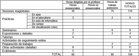 - Docencia presencial mediante clases magistrales de contenido teórico. Uso de herramientas multimedia de apoyo a la docencia.