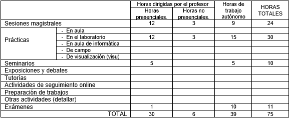 - Clases Magistrales: se dedican a la presentación y exposición participativa del profesor para los contenidos de la asignatura.