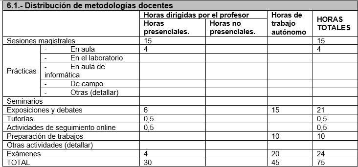 Se combinarán lecciones magistrales con actividades prácticas grupales e individuales a desarrollar en clase (debates, pequeños problemas de investigación, etc.). Se trabajará la exposición pública de ideas y proyectos, y la capacidad de análisis crítico de textos. Se desarrollarán actividades de seguimiento online y tutorías.